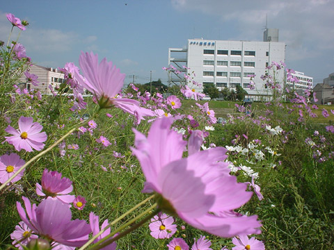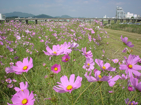 遠賀川中の島のコスモス
