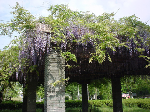 福岡城跡に広がる舞鶴公園は、四季を通じて様々な花を観賞させてくれます。 ここの藤棚は、福岡の冬の風物詩だった福岡国際マラソン大会の競技場で有名な平和台陸上競技場の前にあります。 又、公園の各所にも藤棚がありしかも付近にはぼたん園、菖蒲園などもあり2倍、3倍と楽しめるスポットです。