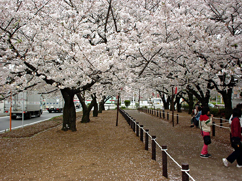 「続・筑前風土記」によれば、近世では夜須野原(朝倉郡)、曽根原(糸島郡)と並んで春日原は「筑前三大広野」の一つにあげられています。この地方をはじめ九州には古来から「原」の文字を「はら」でなく「ばる」と発音する地名群落が数多く存在します。その春日原の中心に福岡市名所100選になっている桜並木がありました。市道中央分離帯の両側に約200メートル続く桜並木には、約110本の桜を地元の自治体の方々が大切に管理されていて、見ていて気持ちよく桜のトンネルを歩きました。また、住宅地が近いと言う事で家族連れの姿が多く目に付きました